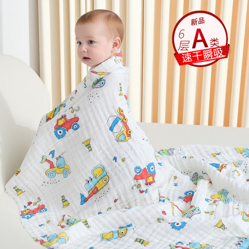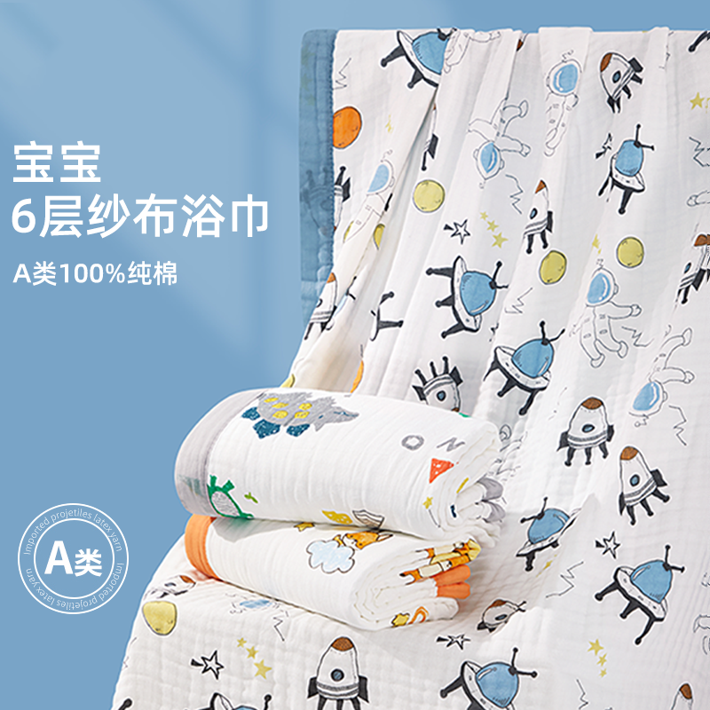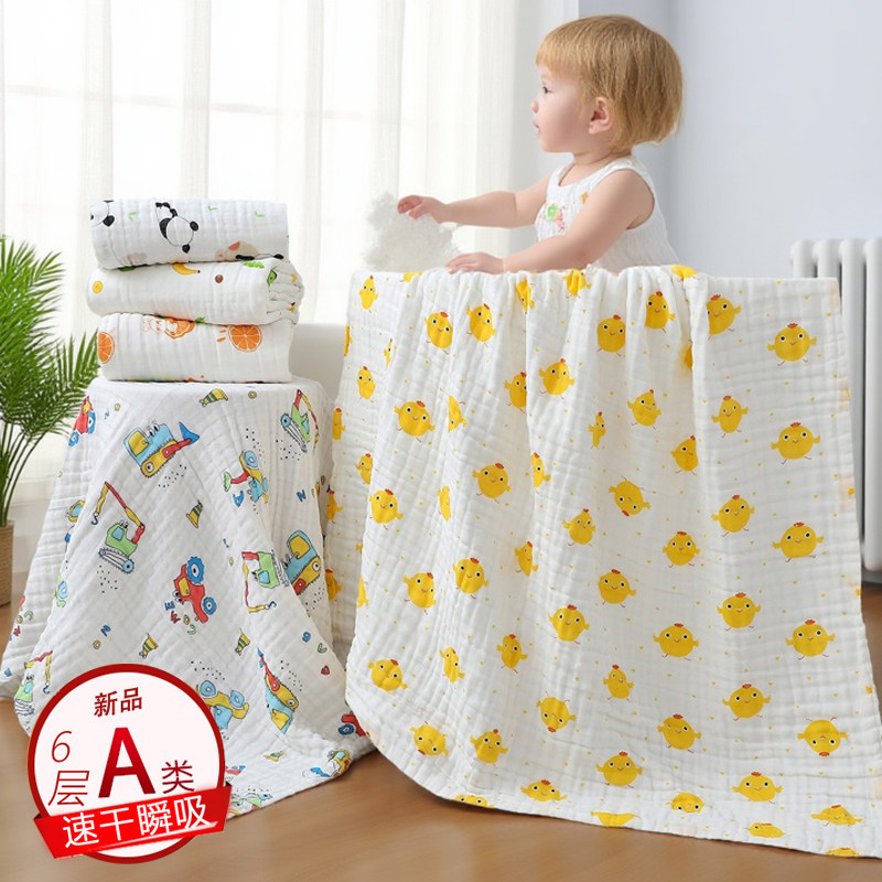 兒童新生嬰兒浴巾純棉六層紗布柔軟吸水洗澡巾A類嬰幼兒標準毛巾