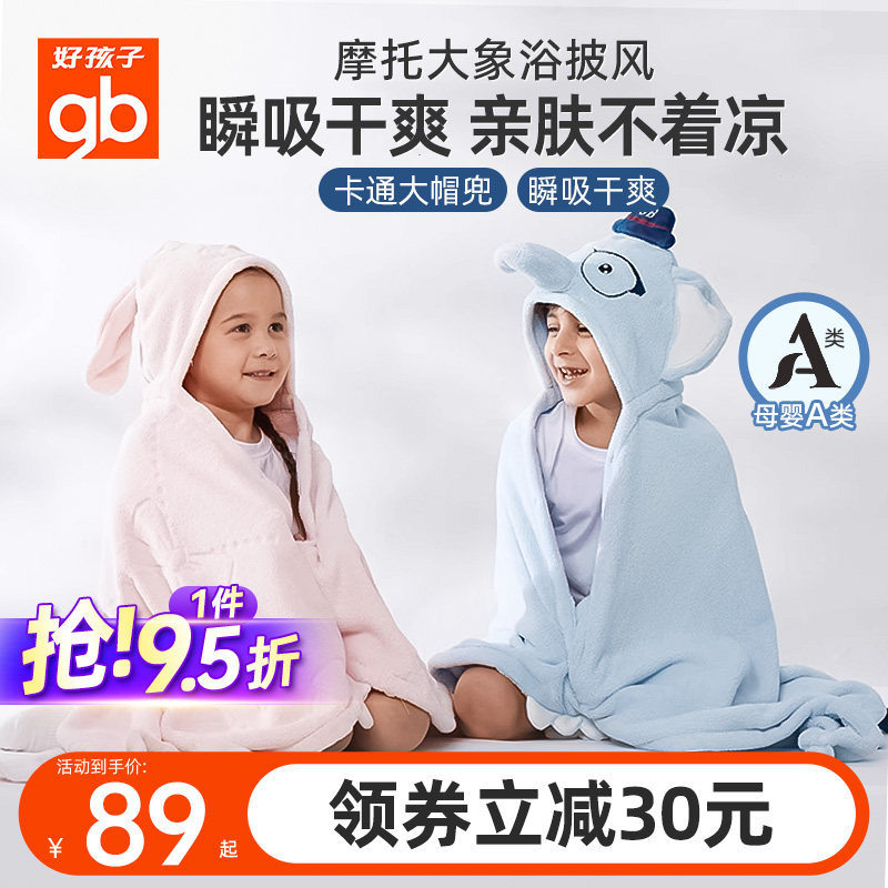 gb好孩子兒童浴巾斗篷浴袍帶帽珊瑚絨嬰兒超柔吸水透氣秋冬加厚