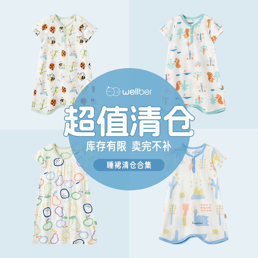 【睡袍清倉】威爾貝魯兒童睡衣寶寶夏季睡袋薄款嬰兒睡袍女童睡裙
