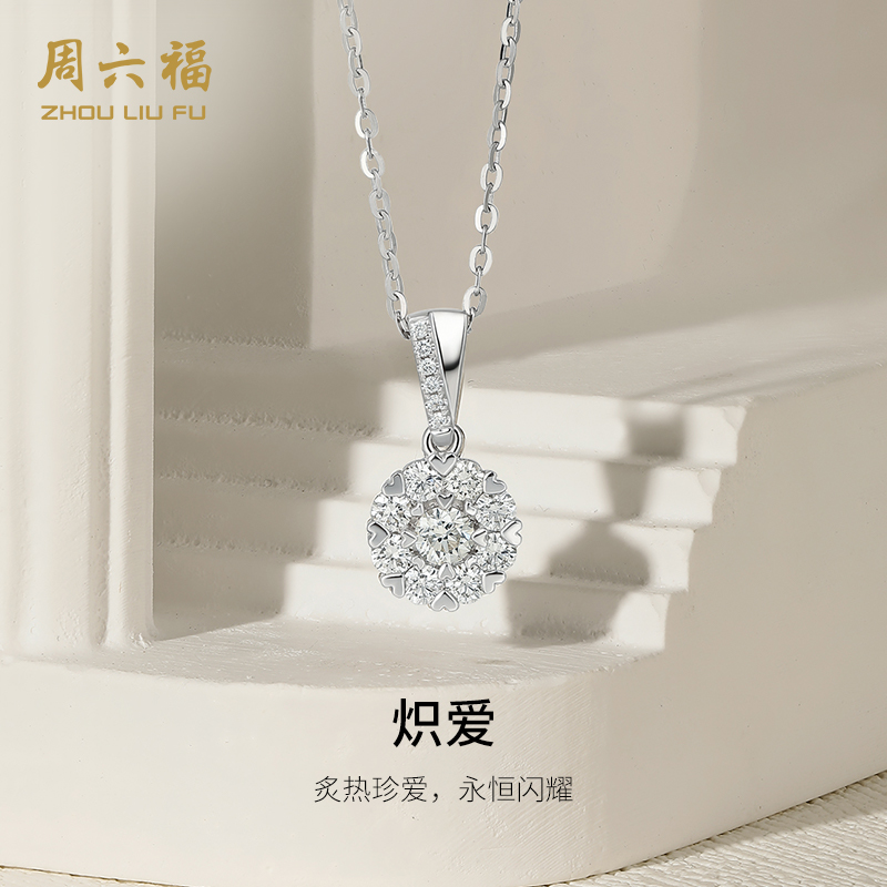 周六福白18k金天然鉆石吊墜單墜女5分真鉆Z璀璨au750官方可配項鏈