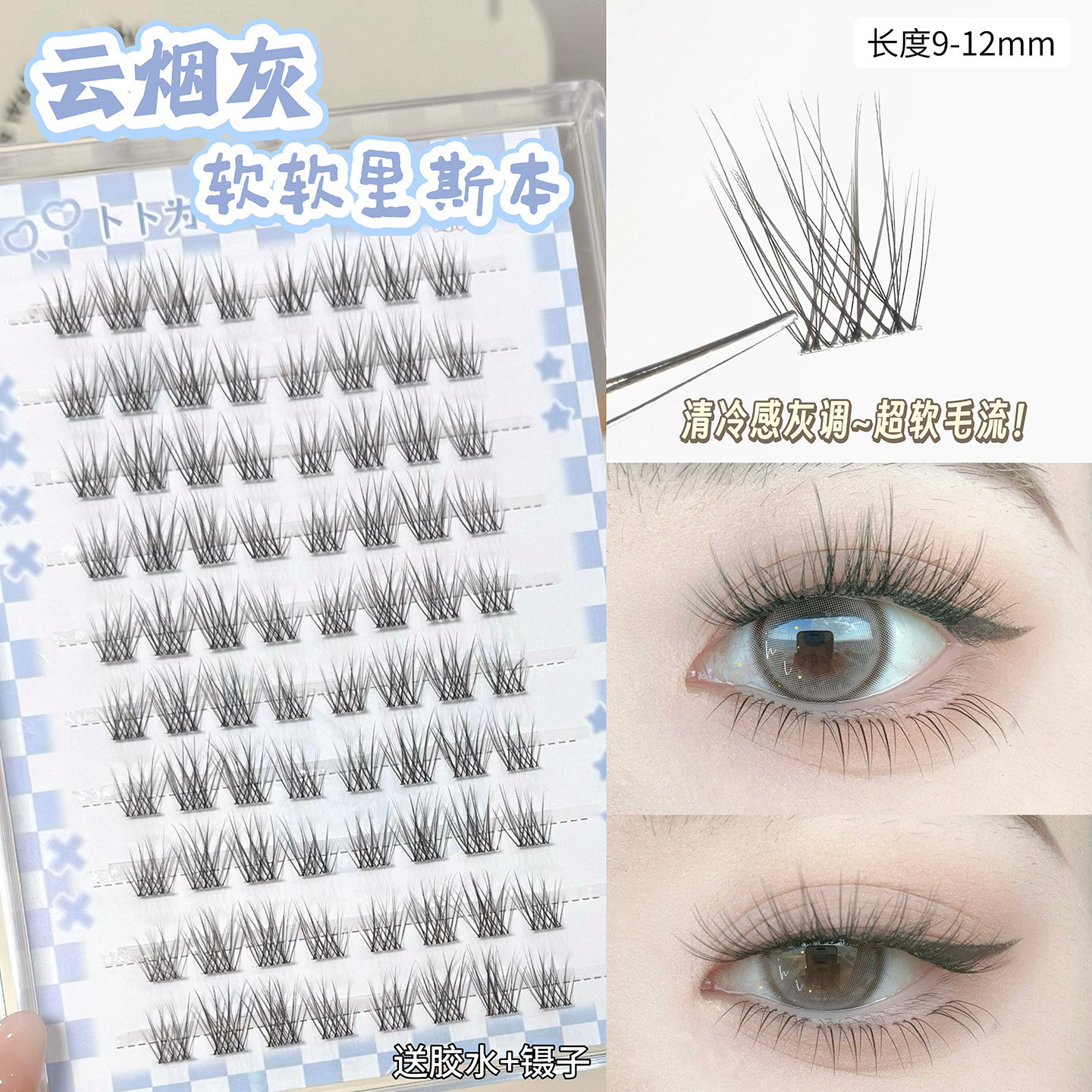 清冷感云煙灰!超軟嬰兒彎假睫毛女自然款太陽花仿真新手里斯本灰