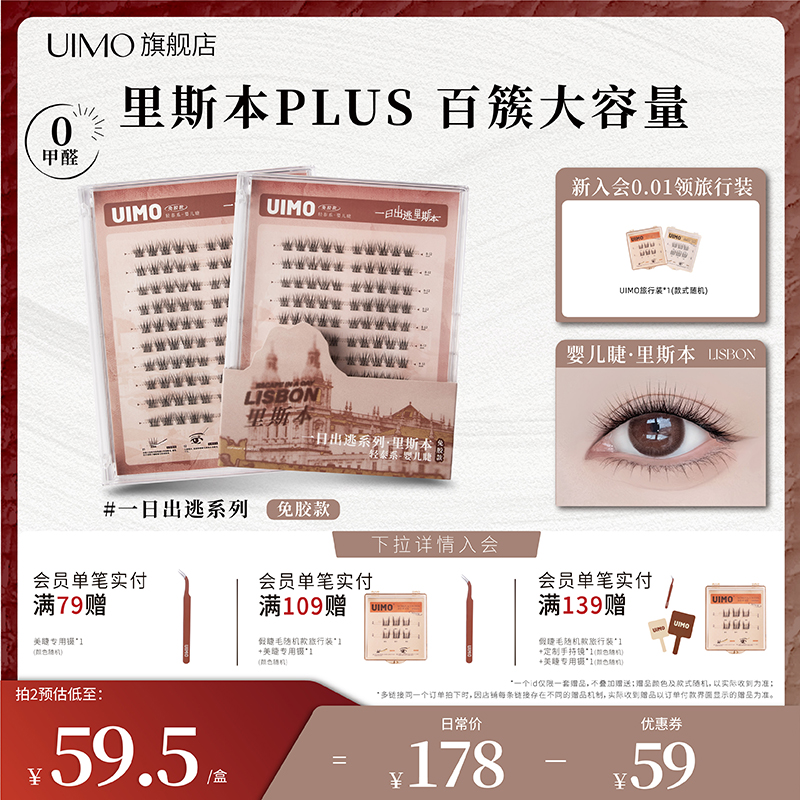 UIMO免膠假睫毛狐系里斯本漫畫睫自然仿真媽生感plus升級款100簇