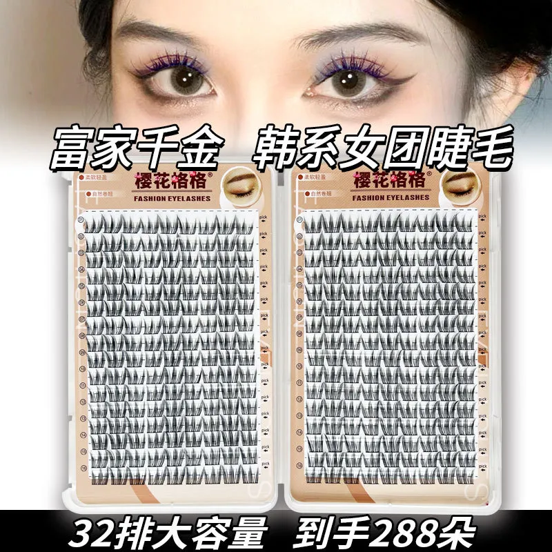 【送膠水】櫻花格格32排大容量富家千金韓國女團睫毛單簇漫畫眼