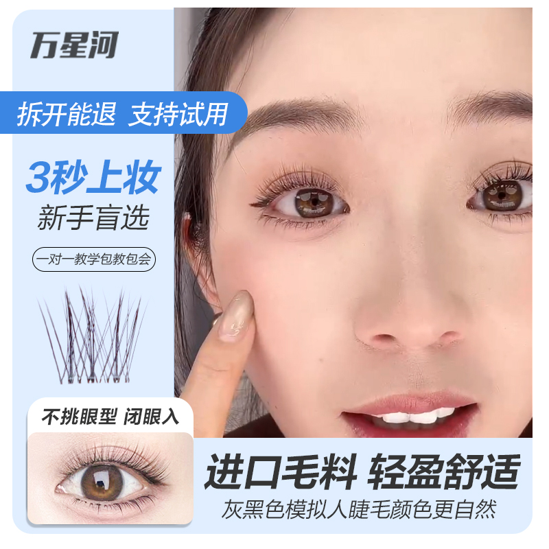再也不想用膠水了!羊系免膠假睫毛自然仿真單簇睫毛懶人假睫毛