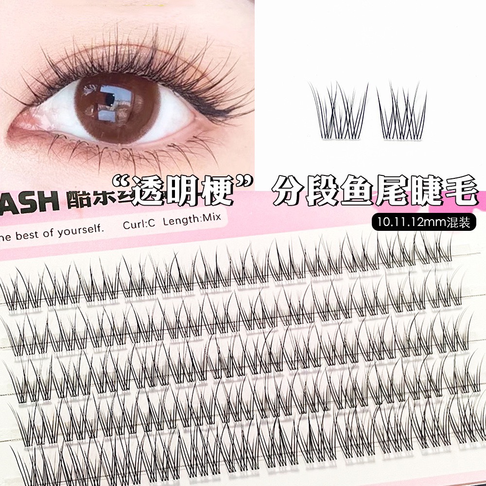 酷樂絲透明軟梗分段魚尾睫毛自然仿真懶人三部曲單簇自嫁接假睫毛