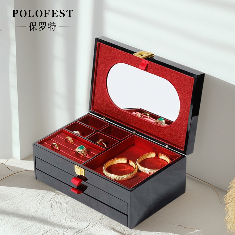 POLOFEST黃金首飾收納盒高檔輕松國風鋼琴烤漆實木翡翠珠寶首飾箱