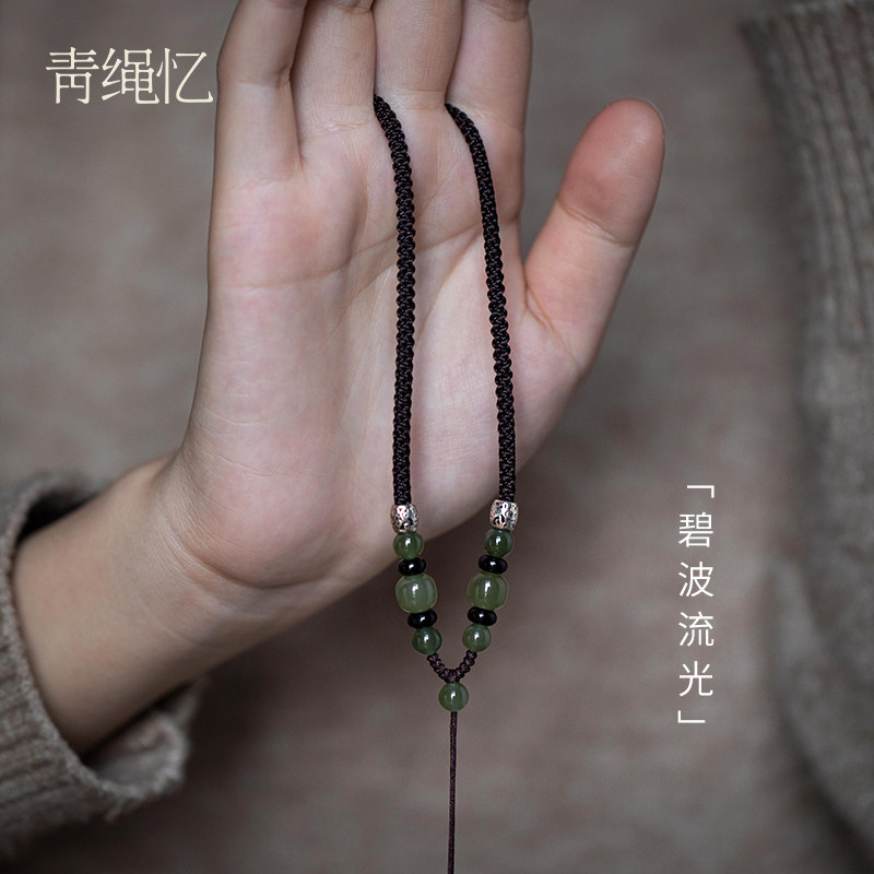 花素翡翠吊墜掛繩項鏈毛衣鏈吊墜繩掛脖全珠鏈玉佩玉墜項鏈繩掛脖