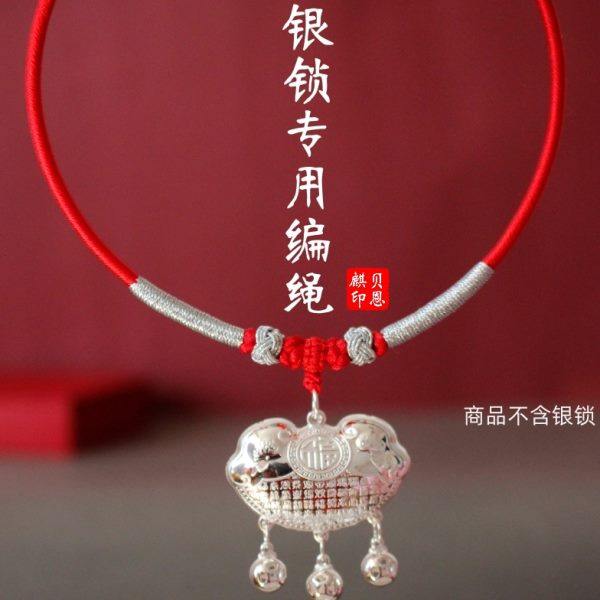 寶寶銀鎖掛繩手工編織繩嬰兒童平安長命鎖專用吊墜紅繩小孩銀項圈