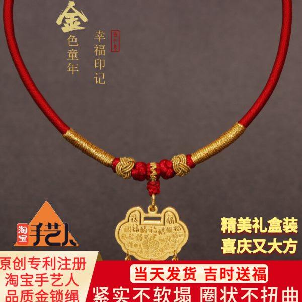 嬰兒金鎖掛繩手工編繩寶寶兒童平安長命鎖專用吊墜紅繩小孩金項圈