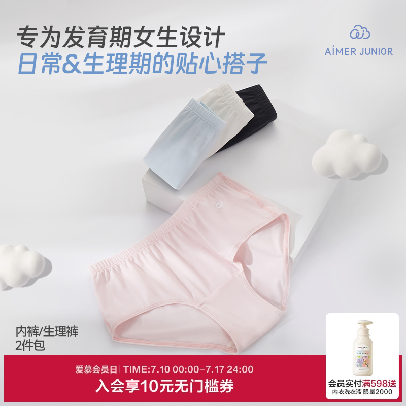 愛慕少女內褲2條裝/少女生理褲中腰平角褲2條裝棉莫萊賽爾