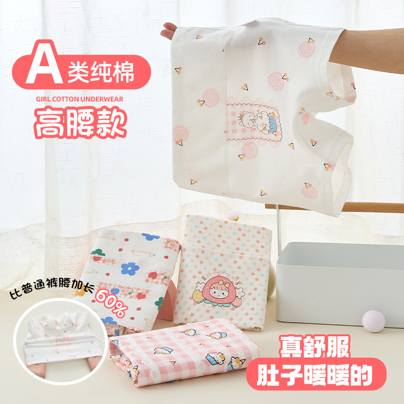 女童純棉內褲高腰護肚三角短褲不夾PP兒童小女孩A類棉女寶寶大童