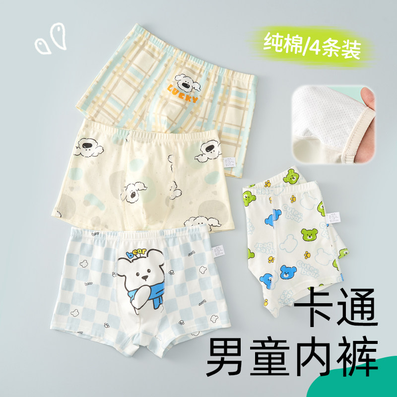 兒童內褲男童純棉100%男寶寶底褲小童中大童男孩平角四角短褲全棉