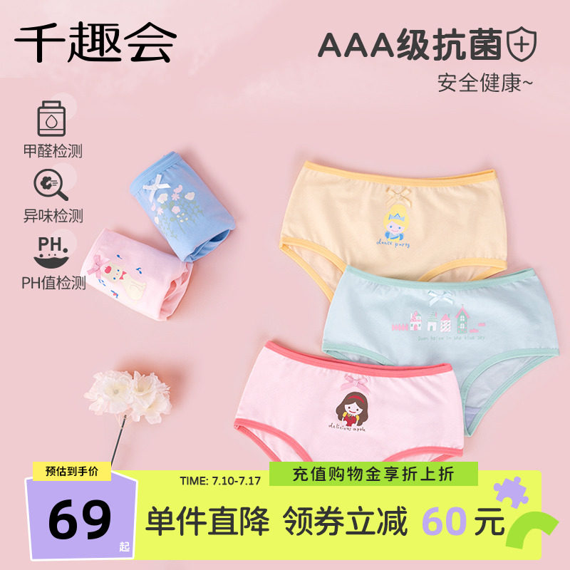 千趣會兒童夏季女童抗菌彈力汗布質透氣高腰平角內褲3條裝