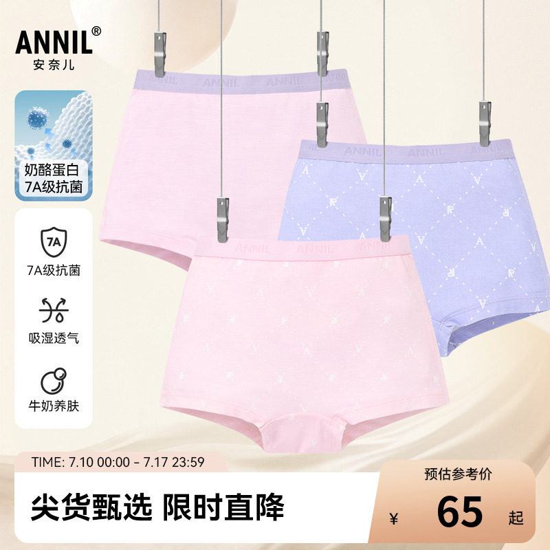 【7A級抗菌】安奈兒童裝女童內褲平角褲三件裝秋莫代爾