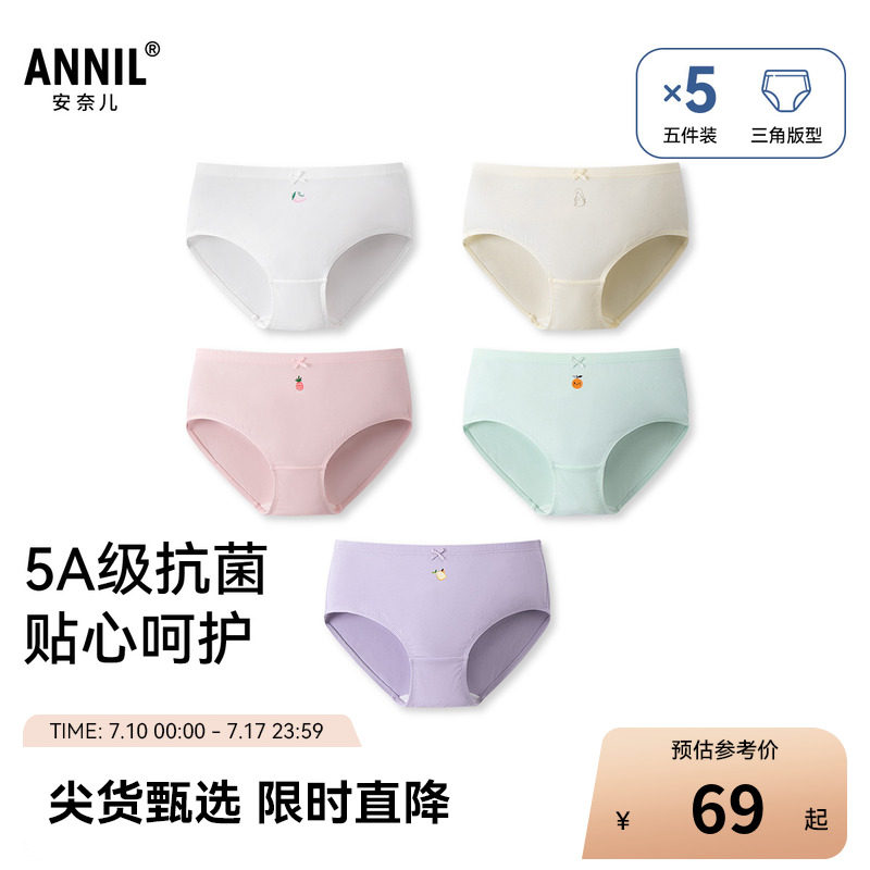 【5A抗菌】安奈兒童裝女童內褲三角褲五件裝2025春新款彈力底褲