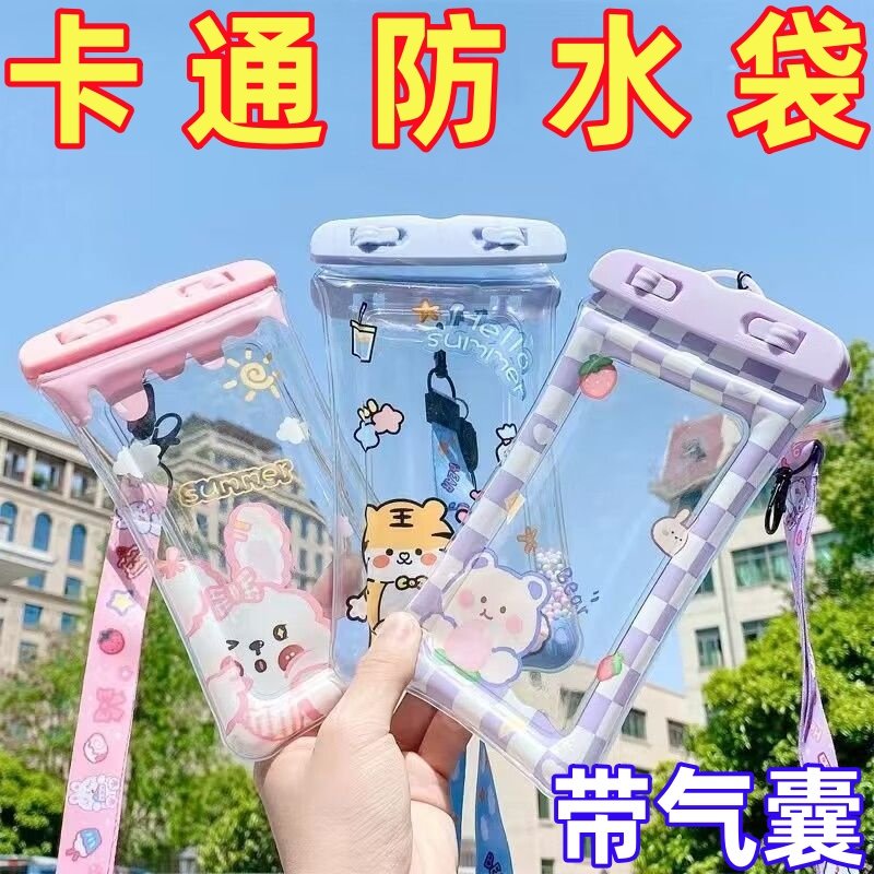 新款卡通大氣囊手機防水袋四層密封透明漂浮防水挎包漂流可觸屏