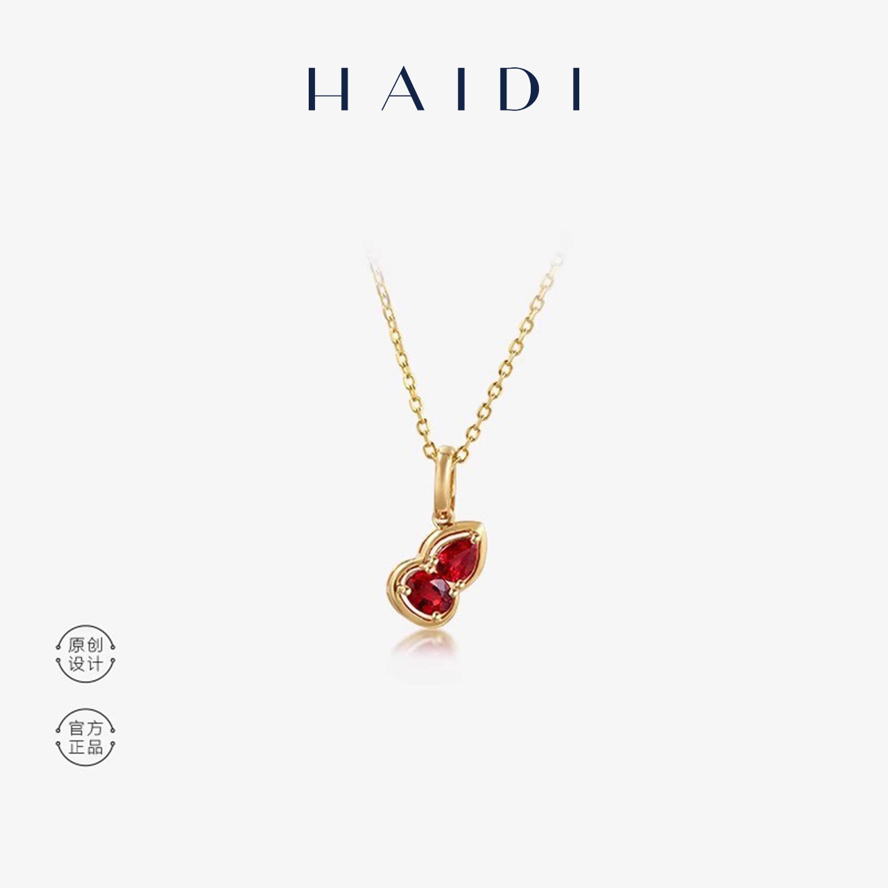 海蒂珠寶 喜寶 18K葫蘆款鴿血紅寶石萬能扣掛墜項鏈彩寶頸飾