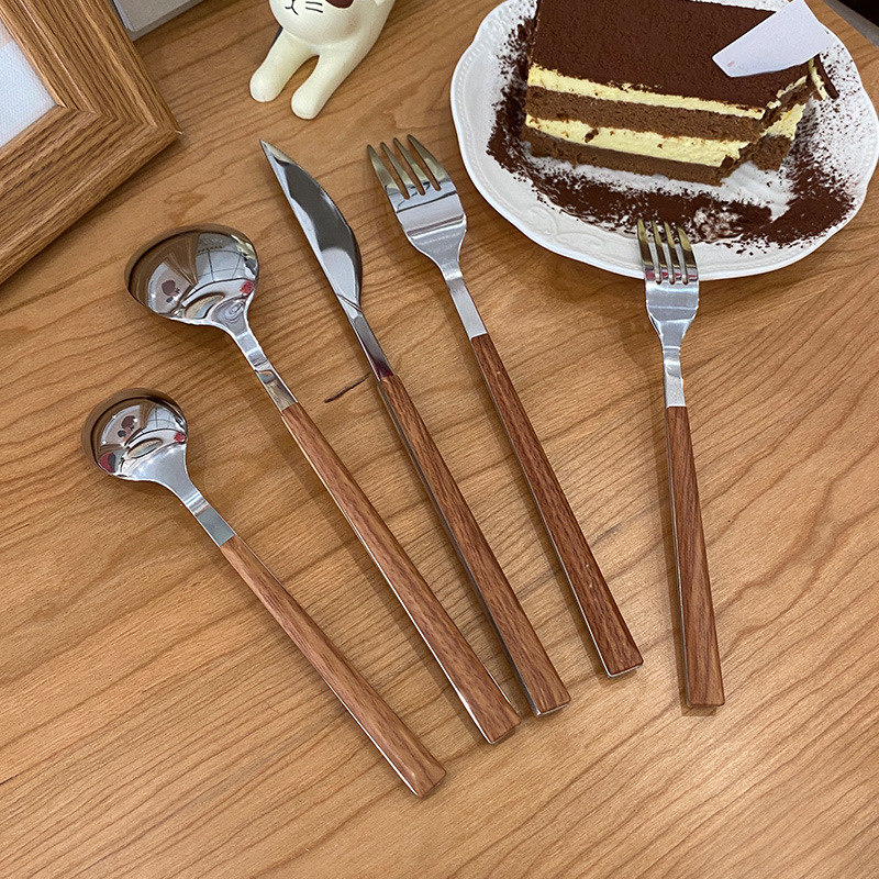 非洲黑檀木手工餐勺餐叉套裝西餐勺西餐叉304不銹鋼餐具