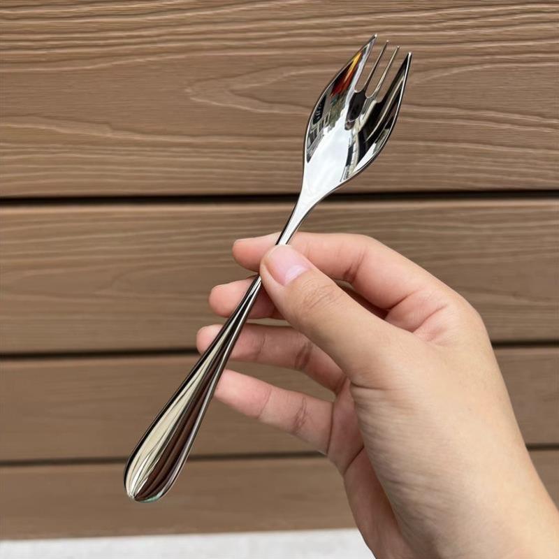 T4kzi德國水果叉可勺可叉304不銹鋼吃飯勺子吃面叉沙拉水果甜品叉