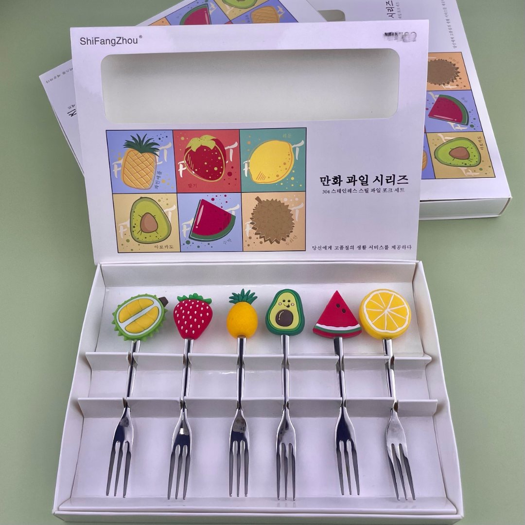 出韓國訂單!創意卡通硅膠304不銹鋼水果叉子輕奢禮盒餐具套裝