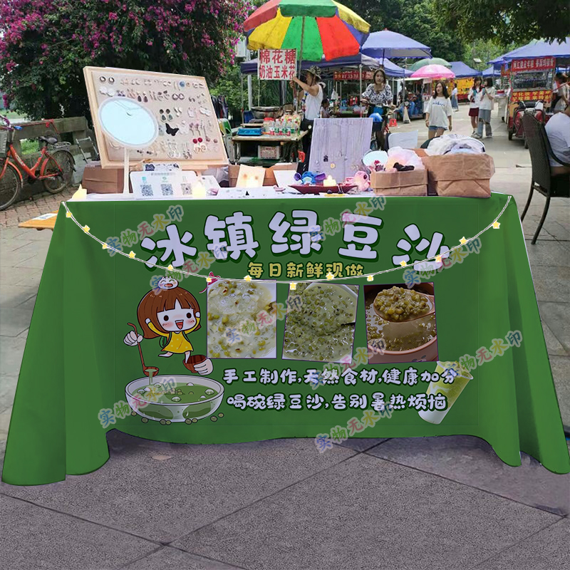 網紅夏日綠豆沙冰擺攤桌布夜市飲品小推車招牌廣告布宣傳攤位臺布