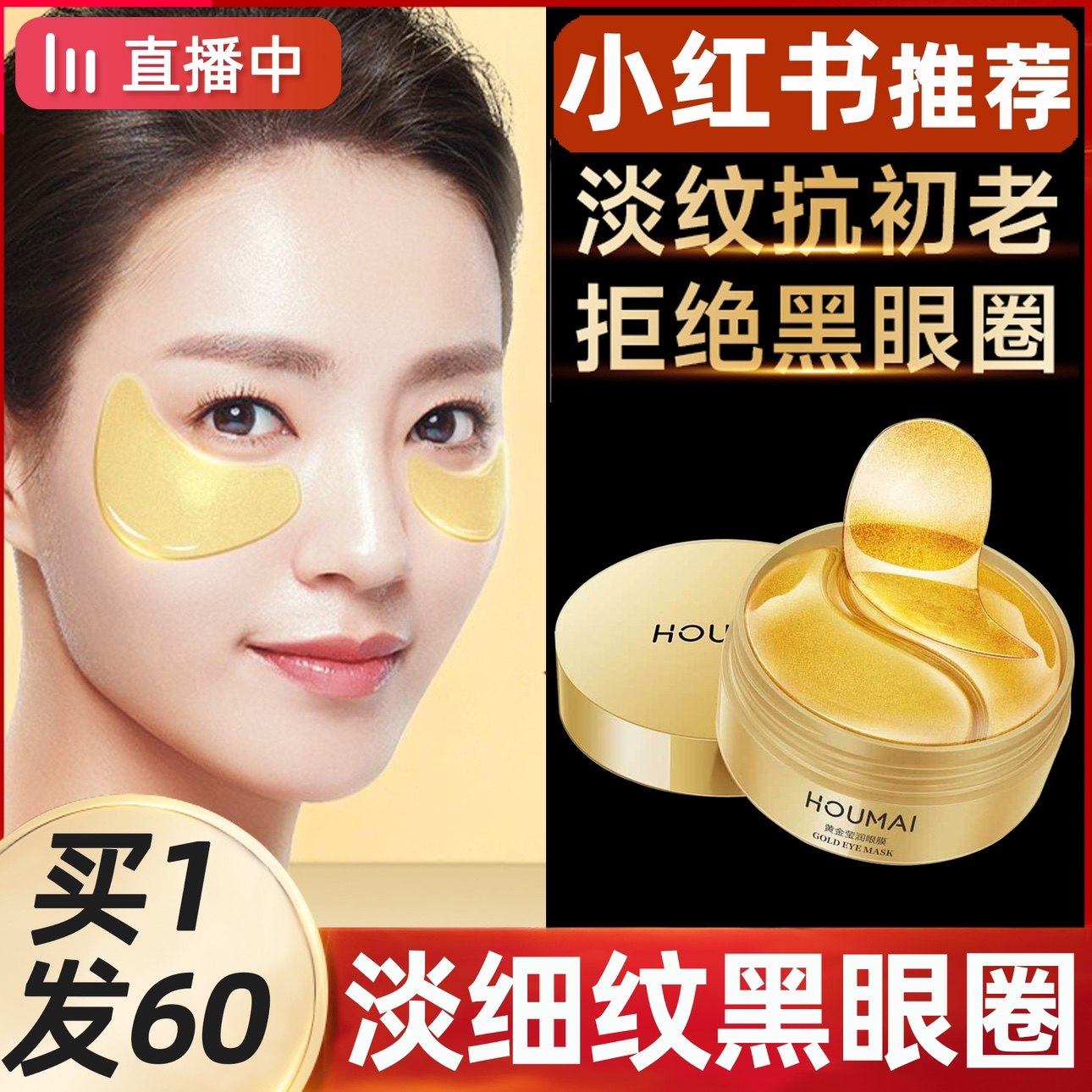 60片膠原蛋白眼膜貼淡化黑眼圈細紋干紋眼袋眼紋貼眼貼膜補水正品