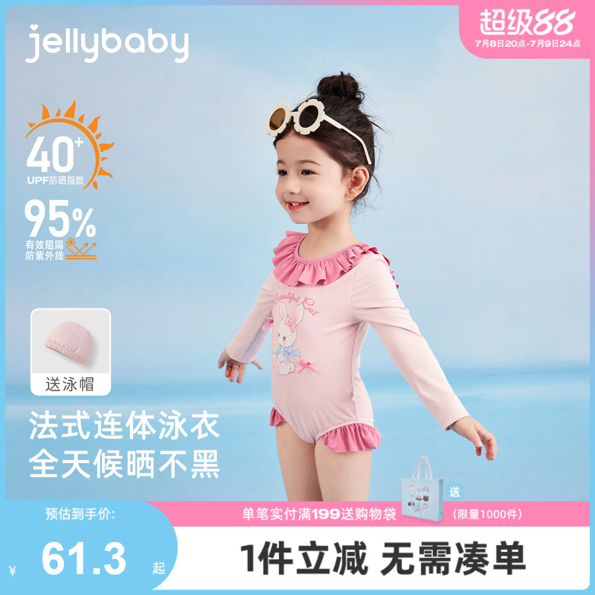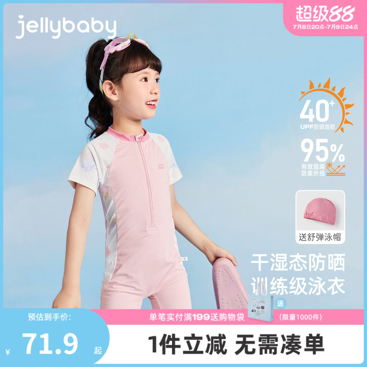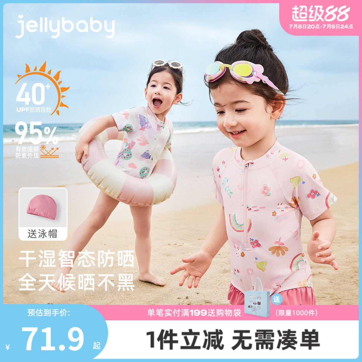 [抗菌涼感]女童泳裝夏季時髦女孩防曬夏裝寶寶沙灘服兒童連體泳衣