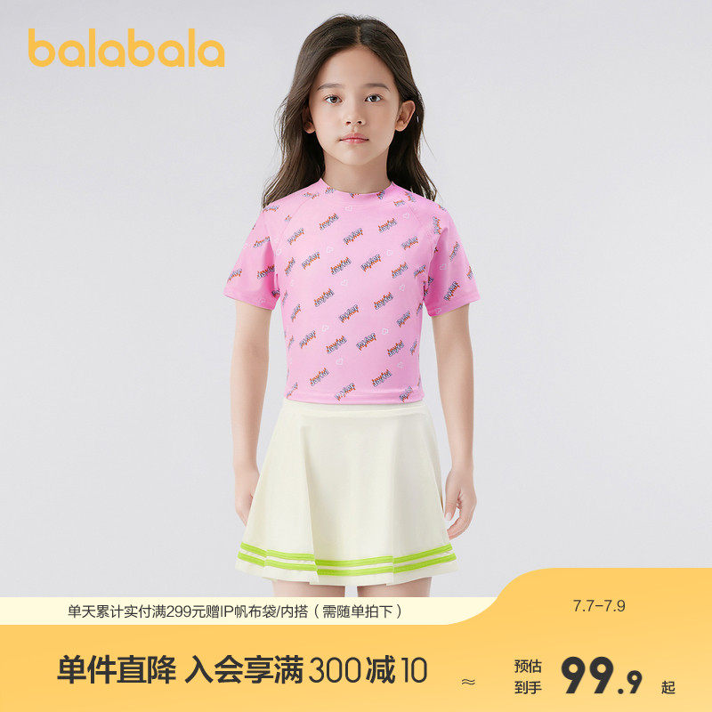 巴拉巴拉女童泳衣兒童泳裝中大童防曬分體甜美洋氣撞色時尚舒適潮