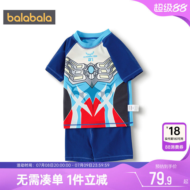 巴拉巴拉男童分體泳衣套裝寶寶游泳裝備兒童衣服新款泳褲防曬泳裝