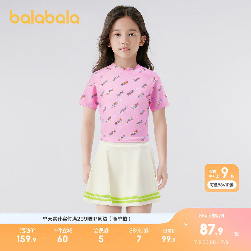 巴拉巴拉女童泳衣兒童泳裝中大童防曬分體甜美洋氣撞色時尚舒適潮