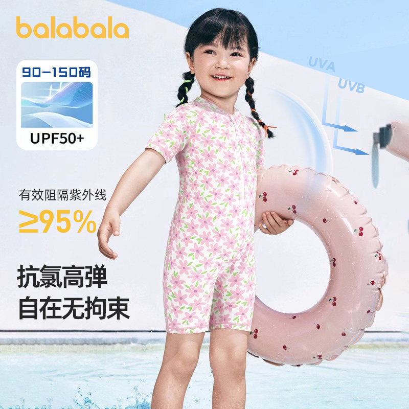 巴拉巴拉女童連體泳衣寶寶防曬泳裝兒童女寶專業游泳衣夏季新款薄