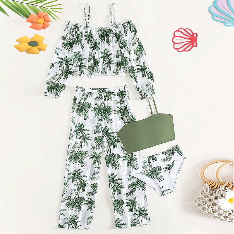 Swimsuit女童泳衣四件套分體泳褲兒童度假分體泳裝跨境長褲游泳衣