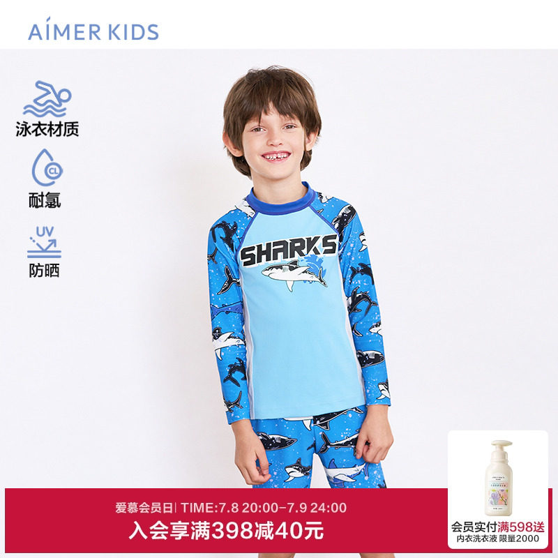 愛慕兒童嬉水鯊魚男孩夏季耐氯高彈輕薄長袖泳衣AK267E581