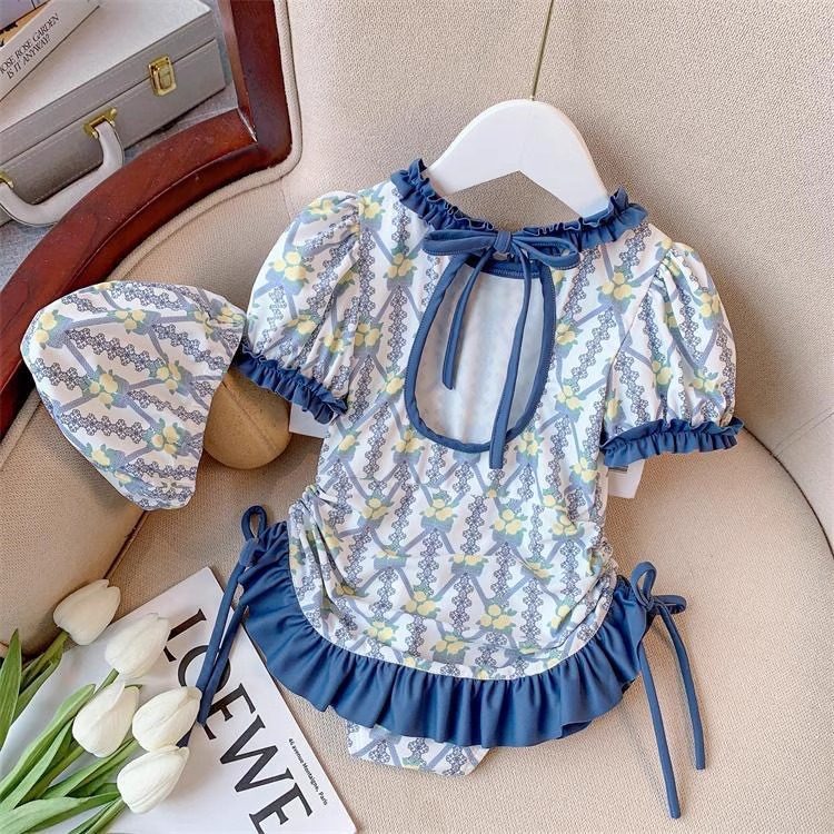 小女孩公主碎花游泳衣夏季新款甜美設計感連體泳裝海邊度假沖浪服