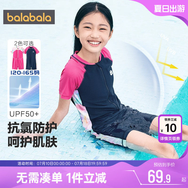 巴拉巴拉女童泳衣套裝男童防曬游泳衣中大童分體泳裝兒童耐氯彈力