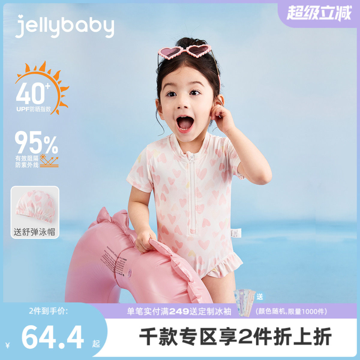 巴拉巴拉女童泳衣套裝兒童連體洋氣小公主可愛防曬游泳裝小童寶寶