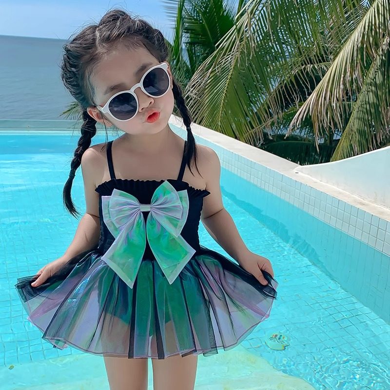 兒童蝴蝶結泳衣夏季新款公主裙時尚女寶寶紗裙連體式泳衣甜美泳裝