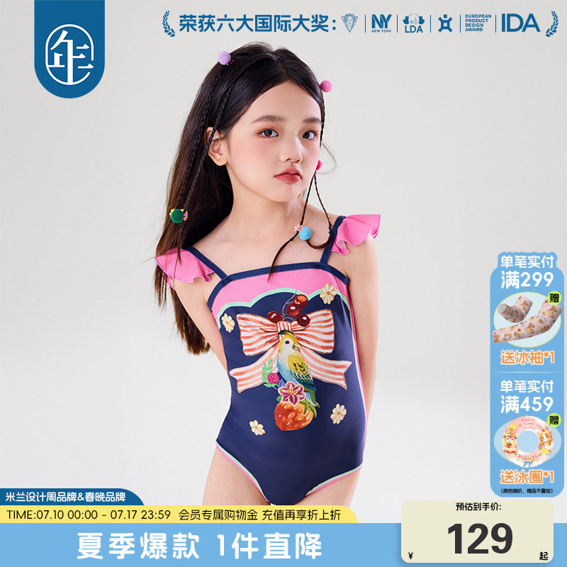 年衣童裝女童連體泳衣無袖2025年夏季新款新中式甜美泳裝速干吊帶