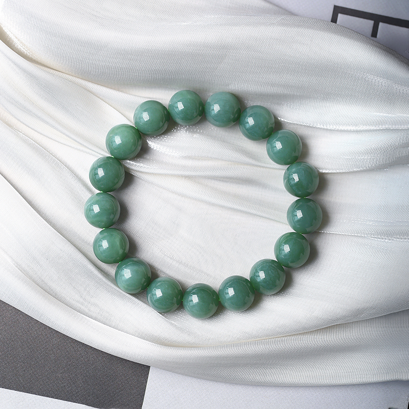 天然俄羅斯碧玉鴨蛋青圓珠手鏈 女款高端玉石簡約款手串飾品