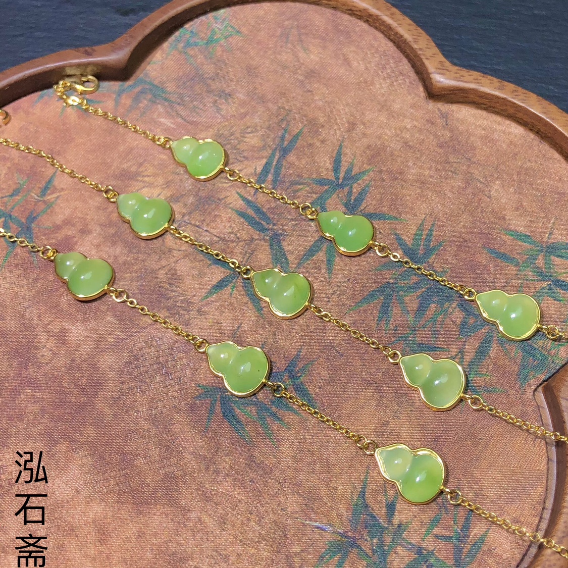 DD0690 天然和田玉碧玉葫蘆手鏈蘋果綠s925銀女10/8mm福祿