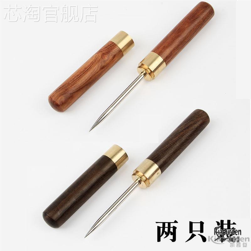 實木圓孔錐子千枚通錐針帶鉤鉆針帶孔鞋錐DIY手工皮革上鞋錐工具