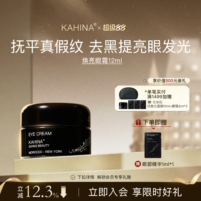 KAHINA煥亮眼霜12ml淡化黑眼圈細紋提亮眼周滋潤保濕提拉緊致眼袋