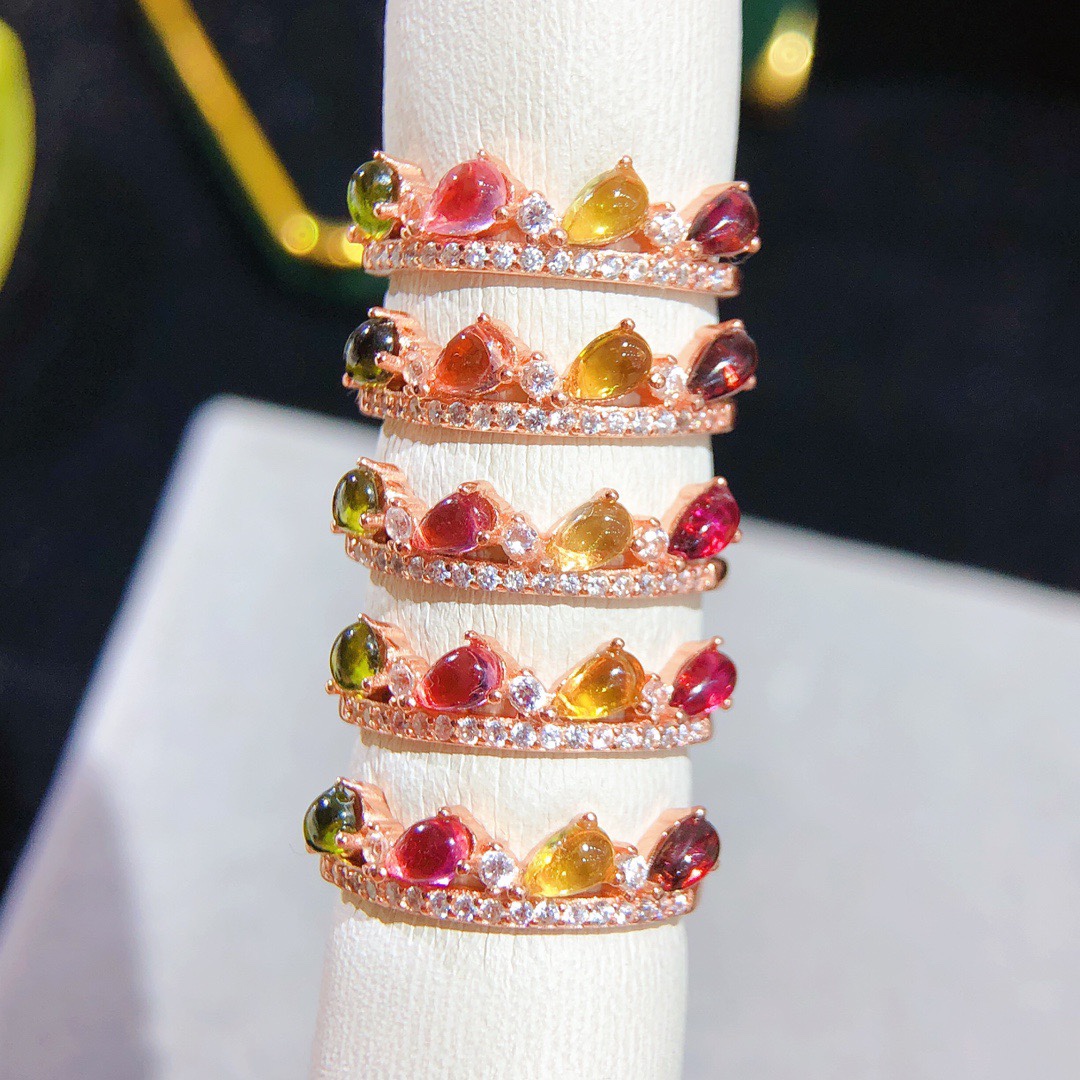 碧璽戒指,s925純銀鑲嵌。晶體干凈,火彩好520禮物