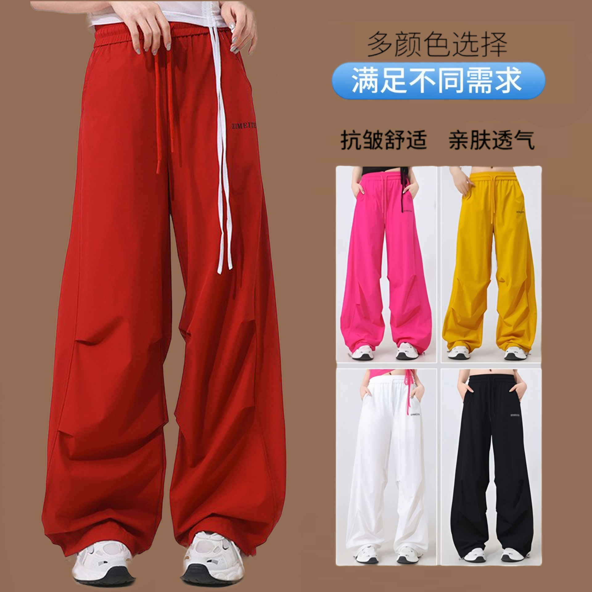 夏季新款廣場舞褲子速干中腰休閑寬松闊腿傘兵褲運動跳鬼步舞褲子