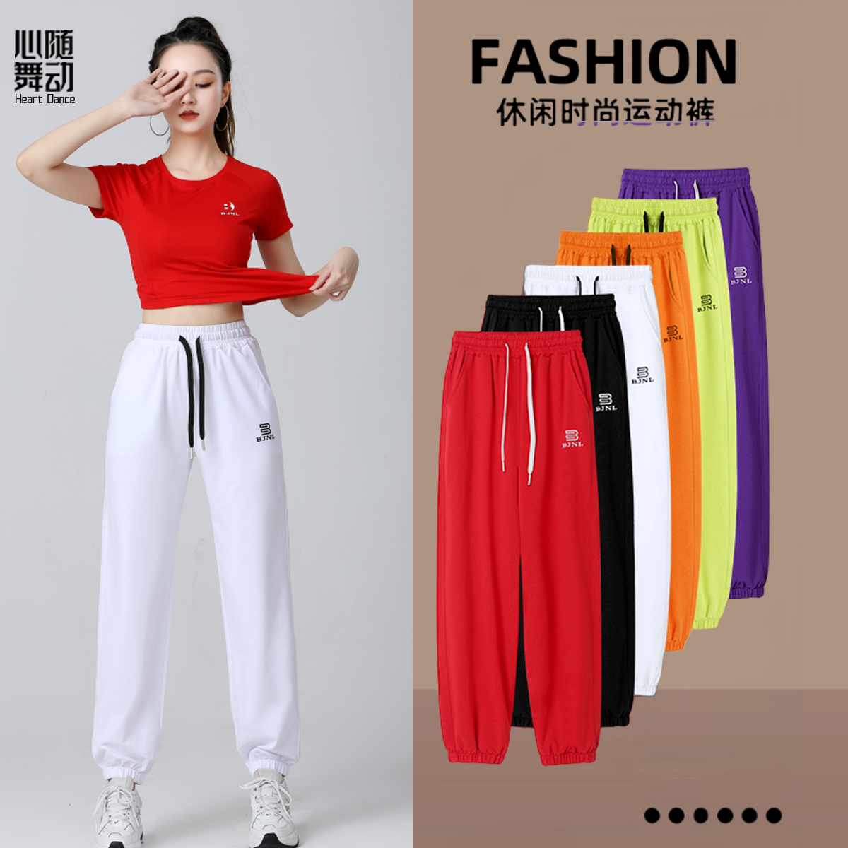 新款廣場舞服裝褲子楊麗萍棉薄款運動時尚跳操鬼步舞蹈束腳長褲女