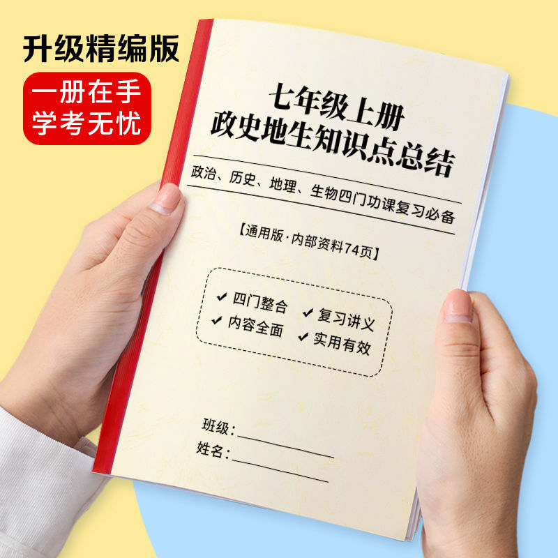 初中七八年級上下冊政治地理歷史生物知識點匯總復習一本通練習本