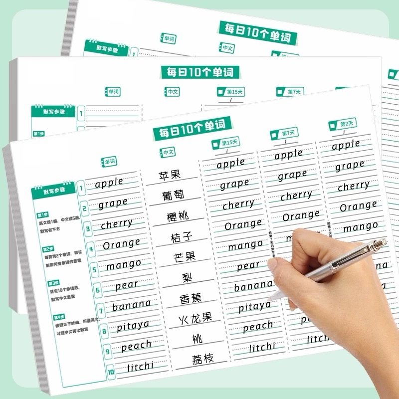 學生英語單詞本每日10個單詞練習紙艾賓浩斯記憶曲線默寫速記本
