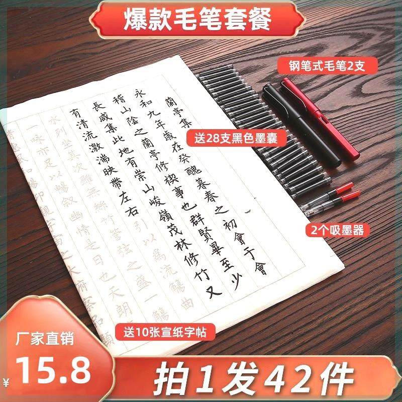 42件套鋼筆式毛筆初學者練字臨摹手抄宣紙字帖書法練習軟筆可加墨