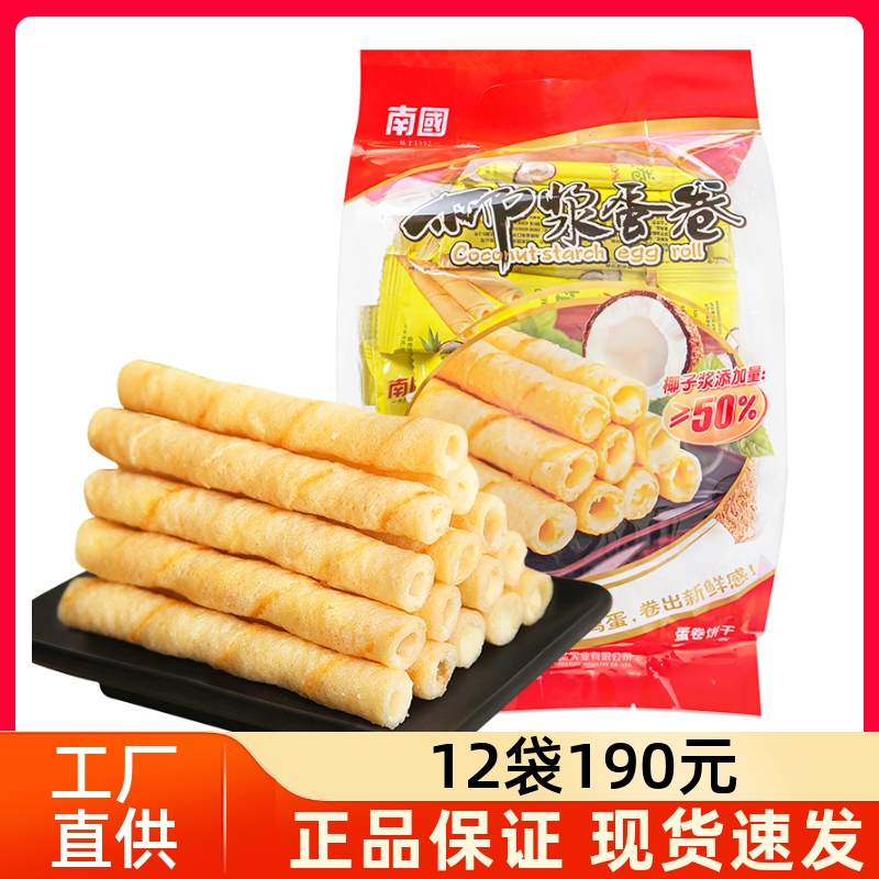 南國椰漿蛋卷405g海南特產椰奶酥脆椰子餅干椰香酥卷早餐代餐零食