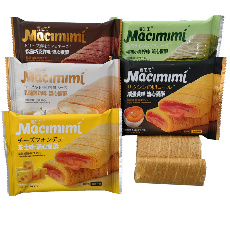 麥米米流心蛋酥芝士味咸蛋黃酸奶巧克力抹茶青檸味夾芯雞蛋卷餅干